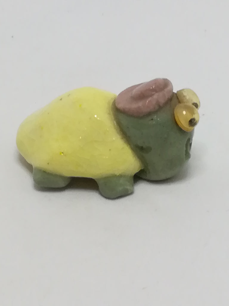 Miniature Clay Green & Yellow Tortoise Hat with Wobbly Eyes (Miniature, suitable for printer's tray)